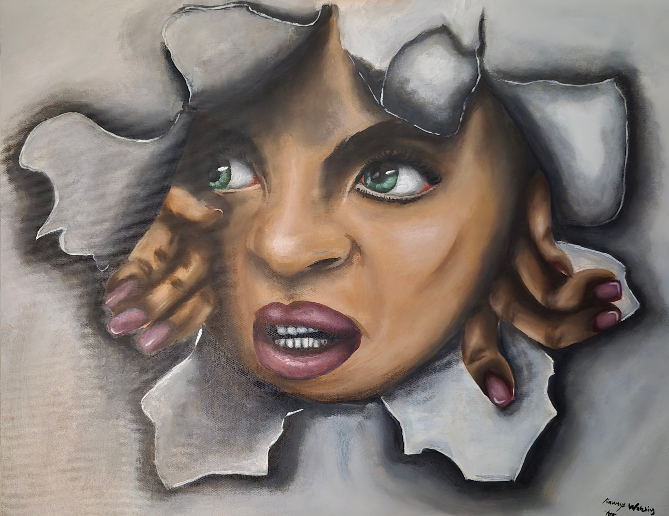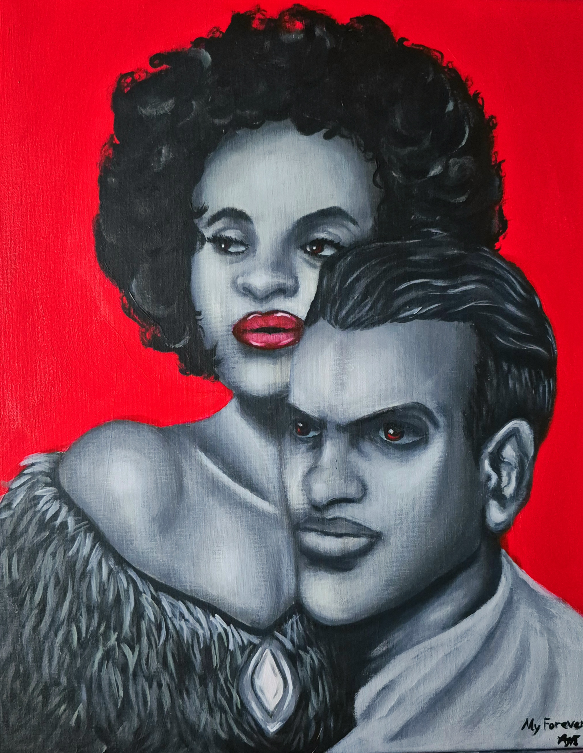 Much of her artwork is inspired by her love for Urban Fantasy books, Mythology and her own real-life experiences as a black woman. Aja’s acrylic paintings have a large focus on Black Representation and female empowerment, all immersed in a backdrop of fantasy. Aja hopes to contribute to the growing need for more Black Representation and female empowerment in the art world.