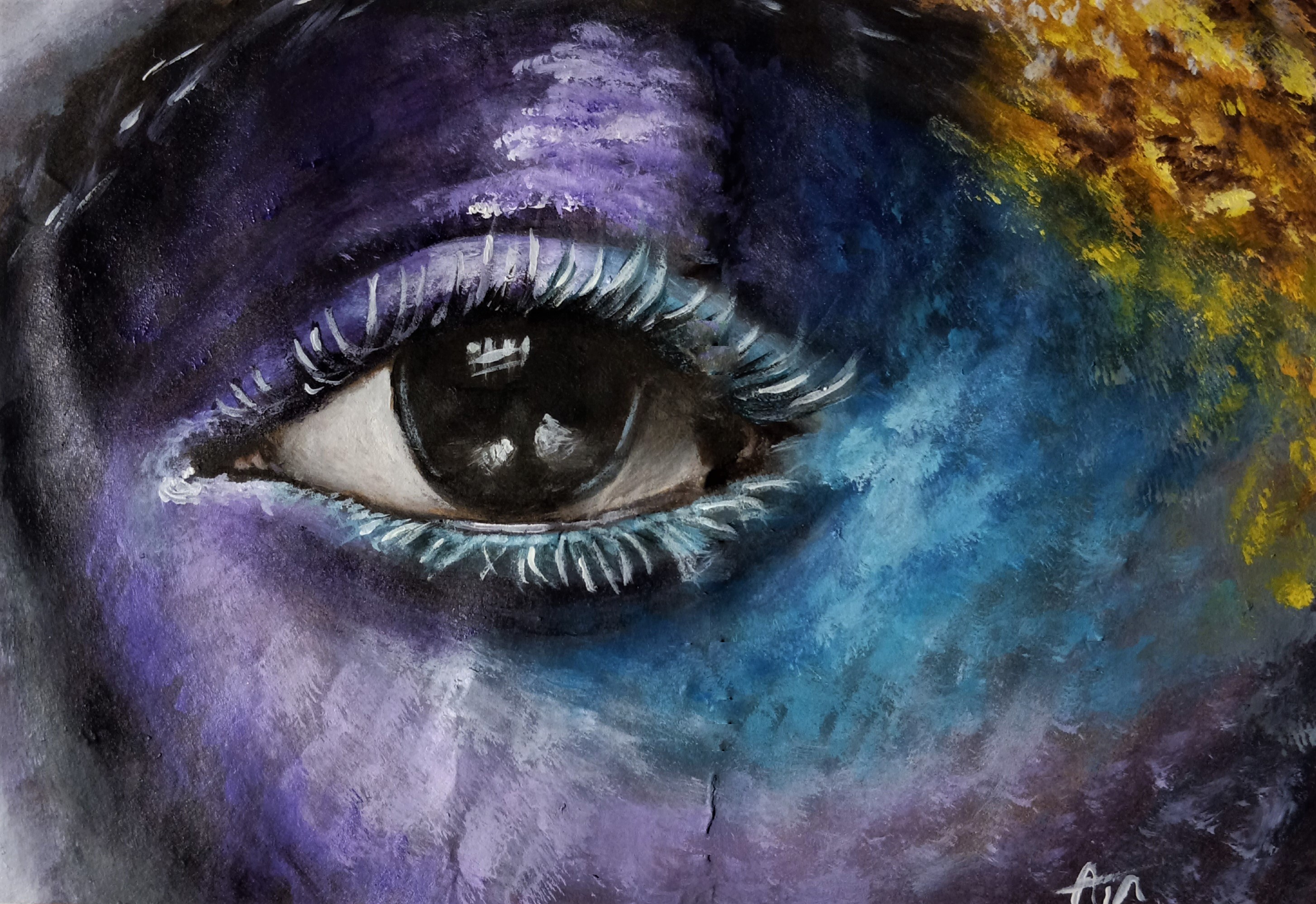 Aja has studied other artists through YouTube and social media to help develop her own artistic style. She often explores various painting techniques and experiments with unique materials, such as gold foil, crystals and artificial flowers. This method has allowed her creativity to flow freely without any limitations.